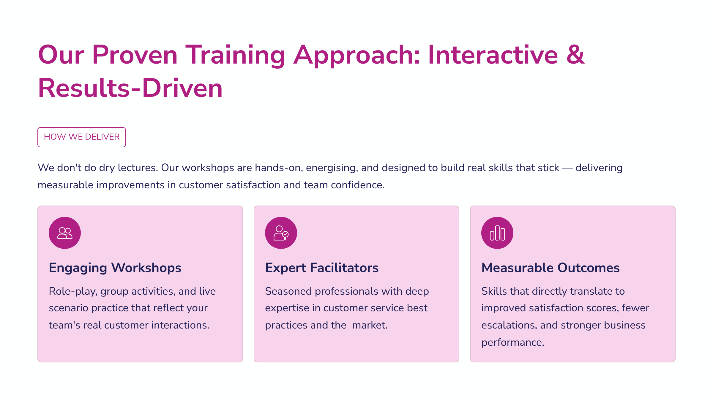Build confident, skilled teams that deliver exceptional experiences — every customer, every time.